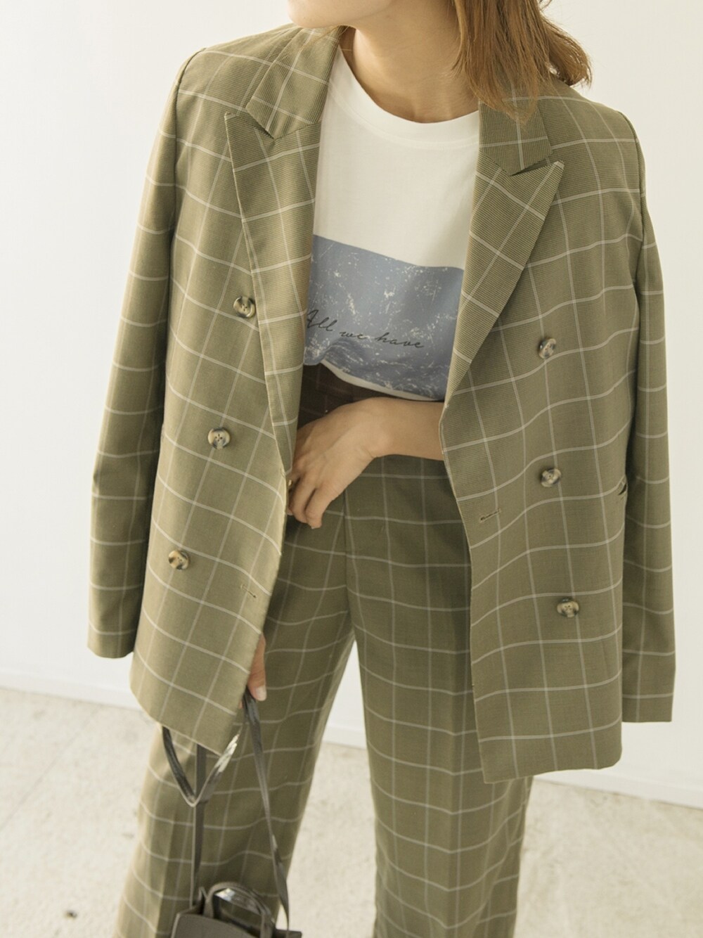 Mnortのテーラードジャケット「【わたなべ麻衣プロデュース】チェックテーラードジャケット(セットアップ可)」を使ったコーディネート