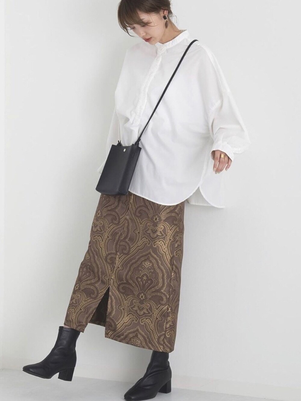 Mnortのシャツ/ブラウス「【わたなべ麻衣プロデュース】シワになりにくいイージーケア/バンドカラーヘンリーネックシャツ」を使ったコーディネート