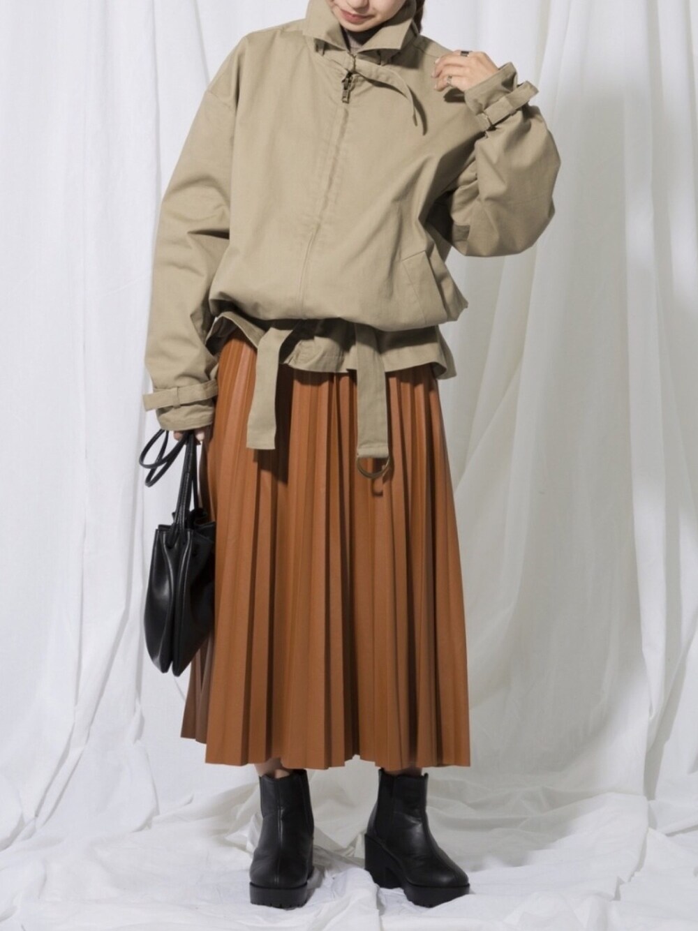 珍しいデザインのペプラムブルゾンで秋を楽しむコーデにしました。 エコレザーアイテムを取り入れでトレンドも忘れない。