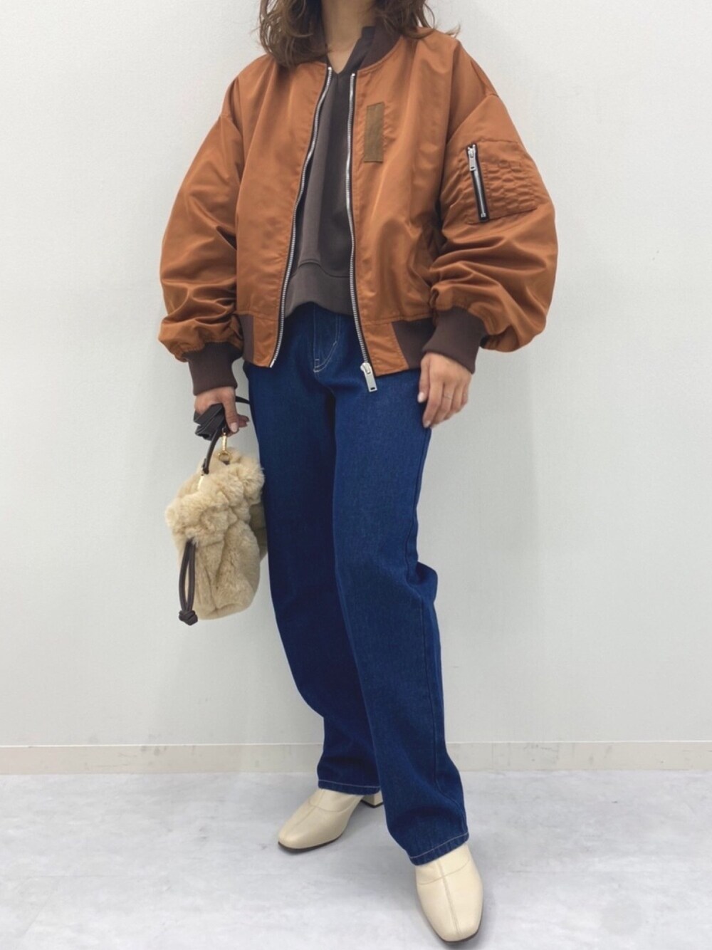 デニムを履きこなす休日。 大人っぽく暗めのデニムにMA-1を。もちろん秋意識でまとめました!
