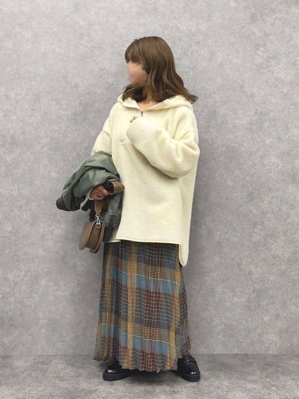 この季節だからこそ着られるボア🤍 存分に楽しみたいからプリーツスカートにも合わせちゃいました☺️結構しっくり来ているのでおすすめのコーデです◎