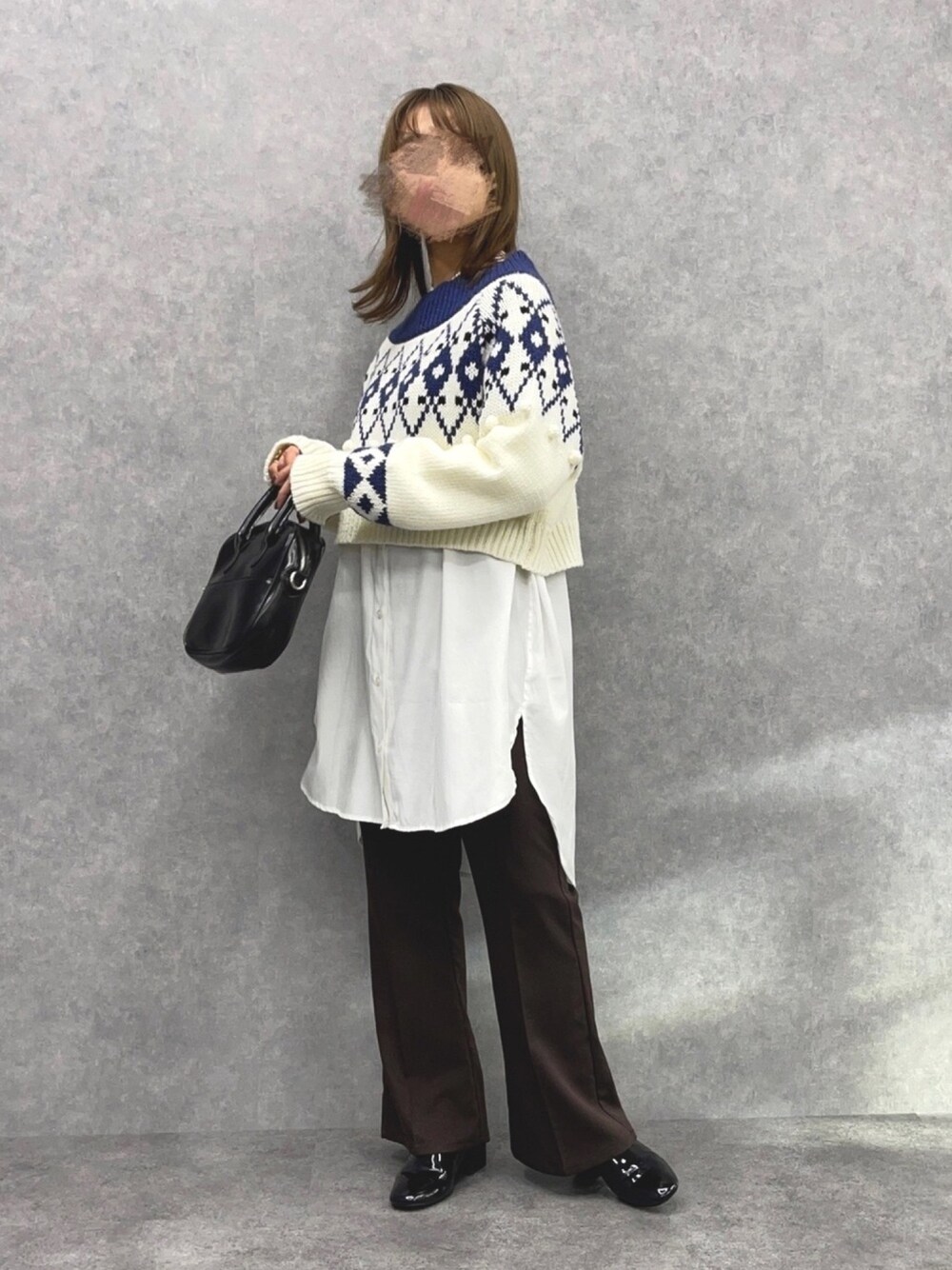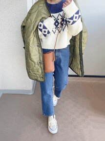 シャツレイヤードしたノルディックニット🧶❄️ 色味バランスも冬らしくて◎