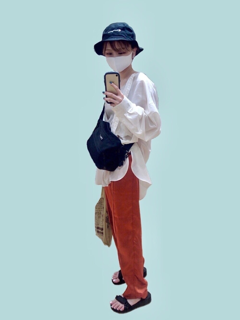 背景消したら浮きました🏖 今日の私服コーデ👦🏼 大好きなオレンジ色のカラーパンツを差し色に、モノトーンでまとめてみました!🦅 気分転換に一時間だけおでかけ🦐 そして見覚えのあるシアーシャツ😂 今日も着ております👦🏼 夜はまだ涼しいので、7月も長袖シアーシャツ大活躍です💡