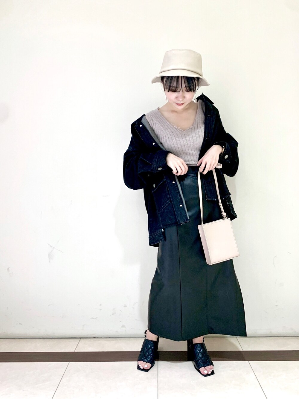 レザーアイテムで秋MIXコーデ🍂 特にこのバケハはオールシーズン使えてめちゃくちゃ便利&可愛いです👦🏻✨ ブラック×ベージュのツートーンも良い…🤔💭
