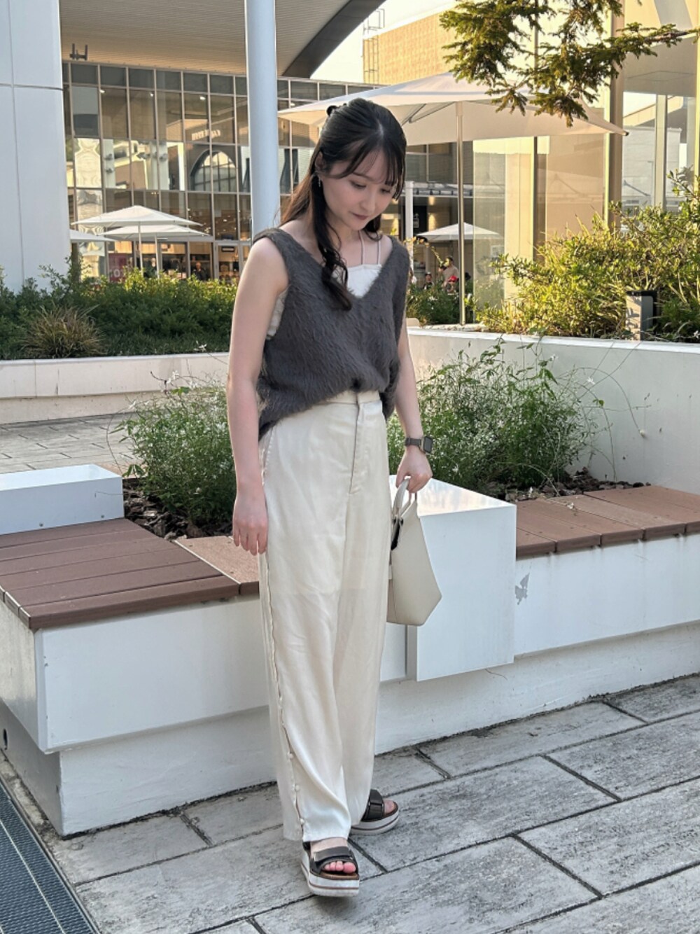 流行りのシャギーベストで秋感🧦 パンツと合わせると、低身長でもスタイルアップして見えます。