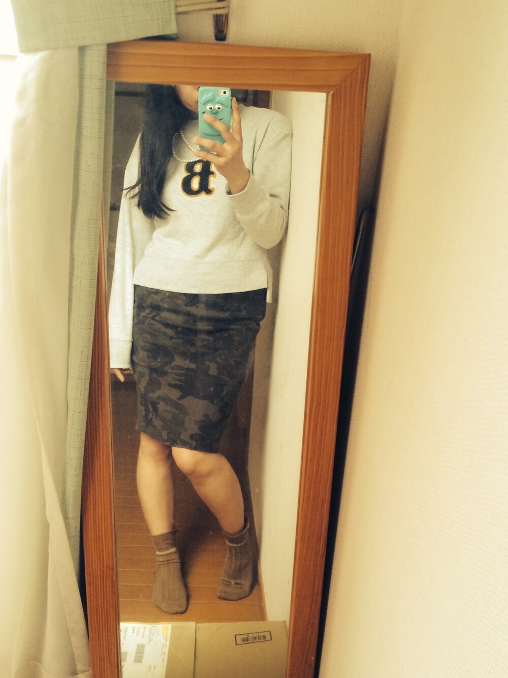 スエット:wcloset スカート:Kastane 丸襟パールネックレスは作りました スカートは本来もっと長いのを 2回折って短くしてます。