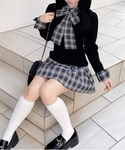 愛琉(INGNI イオンモール高崎)のワンピース「チェック柄ボウタイシャツドッキングニットワンピース」を使ったコーディネート