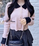 淡いピンクカーデで甘さたっぷりのガーリーコーデ🧸🖤 襟元と袖口はシャギーのふわふわ素材で見た目からあたたかく、ショート丈なのでスタイルアップ効果も抜群✨ ミニスカートを合わせて、可愛さと女性らしさを両立🩷 黒小物で全体を引き締めて、大人っぽい印象にまとめました💄 デートやお出かけにもぴったりな王道フェミニンコーデです🎀