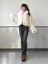 ふわもこ感がたまらないボアジャケットで 一気に季節感アップ🤍 ボリュームのあるアウターも、 スッキリとしたフレアデニムでバランス良く✨ フリンジデザインのデニムが コーデに動きを出してくれて、 シンプルすぎないおしゃれ感をプラス🫶 足元はブラウンの厚底で あたたかみとスタイルアップを両立♡ 冬のお出かけにぴったりな “ゆるかわ大人カジュアルコーデ”です🧸