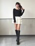 大人かわいいモノトーンコーデ🖤 ブラックヘンリートップスにフリルスカートを合わせて、 甘すぎず上品にまとまるスタイル🤍 スカートの段フリルが動くたびふわっと揺れて、 女の子らしさをしっかりキープ🎀 トップスはコンパクトに、ボトムにボリュームを出すことで スタイルアップ効果も抜群✨ ロングブーツで脚長見せしつつ、 バッグも黒でまとめて統一感を。 おでかけにもぴったりな、 大人ガーリーな冬モノトーンコーデ🖤🤍 Instagram @mnrxing_
