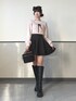 淡いピンクニットにツイード素材のフレアスカートを合わせた、 上品ガーリーな冬コーデ💗 胸元のリボンとヘアリボンで統一感を出して、 可愛さの中にも大人っぽさをプラス🎀 バッグもツイード素材でまとめて、季節感あるスタイルに仕上げました✨ Instagram @mnrxing_