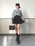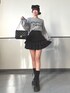 ふんわり質感のロゴニットに、ボリューム感のあるフリルスカートを合わせた 大人ガーリーなモノトーンコーデ🩶 グレー×ブラックで統一して、甘さの中に落ち着きをプラス✨ ヘアリボンとキルティングバッグで可愛さも抜かりなく🎀 カジュアルにもデートにもおすすめの万能コーデです🖤 Instagram @mnrxing_