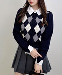 愛琉(INGNI イオンモール高崎)のニット/セーター「アーガイルシャツドッキングレイヤードニット」を使ったコーディネート