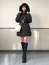 フードのふわふわファーがポイントの黒ダウンアウター🖤 ウエストにベルトがついてるから、 シルエットがキュッと見えて着ぶくれしないのが嬉しいポイント✨ 軽いのにしっかりあったかいから、 冬のお出かけにもぴったりだよ❄️🤍 オールブラックでまとめて ちょっと大人めな雰囲気に…🖤 Instagram @mnrxing_