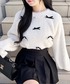 ふわふわ素材のニットに、 散りばめられたブラックリボンが目を引く一枚🎀🖤 甘さがありつつ、モノトーン配色だから 大人っぽく着られるのがポイント✨ ボトムはシンプルなブラックフレアミニで、 トップスの可愛さをしっかり引き立ててくれるバランスに🖤🤍 ウエストまわりもすっきり見えて、 自然とスタイルアップも叶います💫 足元は厚底シューズ×ルーズソックスで、 程よくカジュアルダウン🎶 甘くなりすぎない、 デイリー使いしやすいスタッフおすすめコーデです🥰✨ ⸻ Instagram @mnrxing_