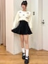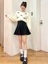 ふわふわ素材のニットに、 散りばめられたブラックリボンが目を引く一枚🎀🖤 甘さがありつつ、モノトーン配色だから 大人っぽく着られるのがポイント✨ ボトムはシンプルなブラックフレアミニで、 トップスの可愛さをしっかり引き立ててくれるバランスに🖤🤍 ウエストまわりもすっきり見えて、 自然とスタイルアップも叶います💫 足元は厚底シューズ×ルーズソックスで、 程よくカジュアルダウン🎶 甘くなりすぎない、 デイリー使いしやすいスタッフおすすめコーデです🥰✨ ⸻ Instagram @mnrxing_