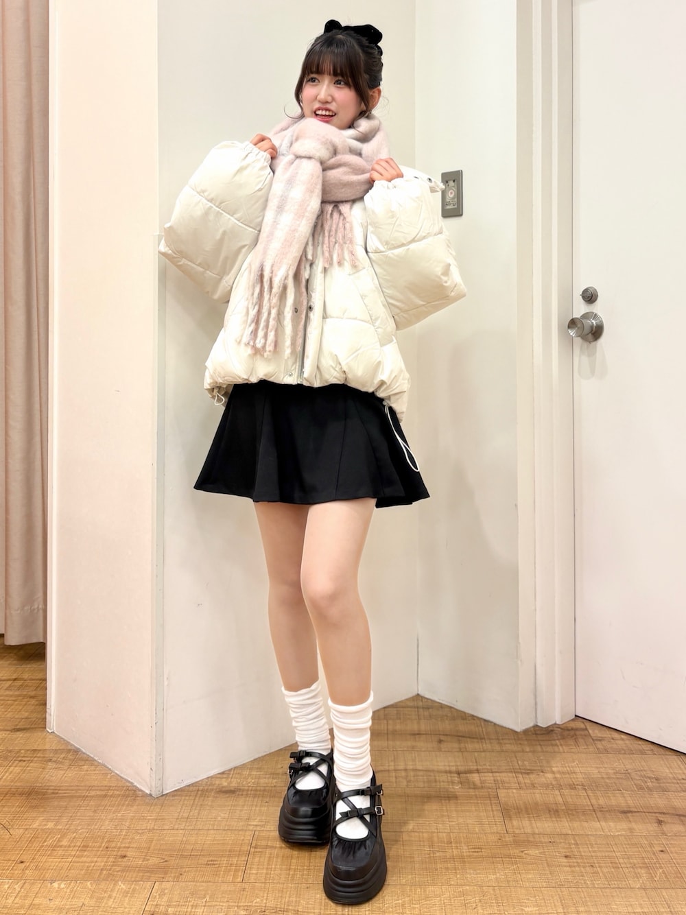 ふんわりボリューム感が可愛いショート丈ダウンに、 ミニスカートを合わせたバランス重視の冬コーデ⛄️✨ ショート丈なので重たく見えず、 自然にスタイルアップできるのが嬉しいポイント🤍 首元はやわらかいカラーのストールをプラスして、 顔まわりを明るく&季節感もしっかりキープ🧣🎀 防寒しつつも、女の子らしさはしっかり残した組み合わせです💫✨ ⸻ Instagram @mnrxing_