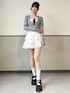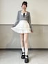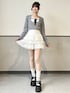 胸元のリボンデザインが可愛いレイヤード風トップスに、 ふわっと広がるレーススカートを合わせた 女の子らしさ全開のスタッフコーデ🎀✨ グレー×ホワイトの配色だから、 甘めでも落ち着いた印象で着られるのがポイント🤍 ティアードのレースが動くたびに揺れて、 シンプルだけどしっかり存在感も◎ 足元は厚底シューズ×ルーズソックスで、 甘さの中にちょっぴりカジュアルさをプラス👞✨ デートにもお出かけにもおすすめな 優しめガーリーコーデです🫶💫 ⸻ Instagram @mnrxing_