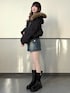 ボリューム感が可愛い ファー付きショートダウンで あったか&今っぽさを両立❄️✨ ショート丈だから デニムミニとの相性もばっちり💙 脚長効果も◎で バランスの取れたシルエットに🫶🏻 足元はごつめブーツで 甘さをおさえた カジュアルガーリーな 冬のスタッフコーデです🖤✨ ⸻ Instagram @mnrxing_