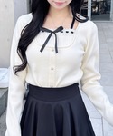 胸元のリボンがポイントの ガーリーなニットトップス🎀✨ レイヤード風で女の子らしさ全開!! ブラックのレイヤード風プリーツミニと 合わせて甘すぎない 大人可愛いコーデにしてみたよ🖤 足元はルーズソックス×厚底で ちょっぴりトレンド感もプラス👟🤍 シンプルだけど シルエットが綺麗に見える おすすめコーデです🫶🏻✨ ⸻ Instagram @mnrxing_