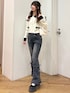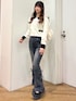 配色デザインがポイントの コンパクトカーディガン🤍🖤 さりげないゴールドボタンで 上品見えも叶います✨ デニムはレースアップデザインで 細かなところまで抜かりなく🫶 シンプルだけど しっかりトレンド感のある 大人ガーリーコーデです🤎 ⸻ Instagram @mnrxing_