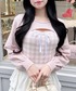 愛琉(INGNI イオンモール高崎)のニット/セーター「ボレロレイヤード風リボンギンガムチェックニット」を使ったコーディネート