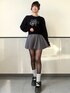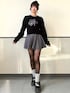 存在感のある ロゴニットに さりげなくラメ感のある フレアミニを合わせた 甘辛ガーリーコーデ🎀✨ ブラックトップスで コーデをきゅっと引き締めつつ フレアシルエットで 女の子らしさも忘れずに🤍 足元はソックス×厚底で 今っぽバランスに🖤 ⸻ Instagram @mnrxing_