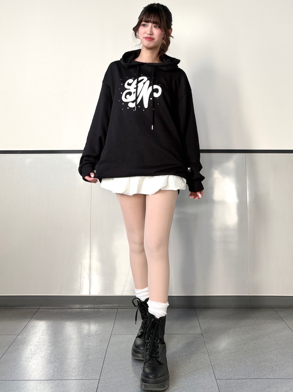 存在感ばっちりな ロゴパーカーが主役の 楽ちんかわいいコーデ🫶✨ オーバーサイズで 華奢見えも叶うし バルーンスカート合わせで バランス最強🥹🤍 ブラック×ホワイトの 王道配色だから カジュアルなのに ちゃんと女の子らしいのがポイント🎀 足元は ごつめブーツで ちょっぴりエッジを効かせて 甘辛MIXに🖤✨ ゆるっと着たい日も 可愛さは絶対に譲れない人に おすすめコーデです🤭💭 ⸻ Instagram @mnrxing_