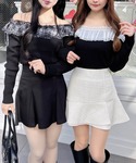 愛琉(INGNI イオンモール高崎)のニット/セーター「ラインストーンチェーンオフショルフリルニット」を使ったコーディネート