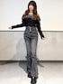 チェックフリルが目を惹く オフショルニットで 一気に大人っぽい雰囲気に🥹✨ デコルテ見せで 程よい色気も出しつつ ブラックだから甘くなりすぎないのが最高🫶 ボトムは ハイウエストのフレアデニムで 脚長効果ばっちり👖💫 サイドのリボンデザインが さりげなく可愛くて 後ろ姿まで抜かりなし🎀 厚底ローファー合わせで さらにスタイル盛れ確定🖤 デートにも 夜カフェにも ちょっと大人っぽくキメたい日に 着たいコーデ🤍✨ ⸻ Instagram @mnrxing_