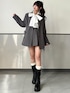 セットアップ対応で、着るだけでまとまる洗練コーデ🩶🖤 落ち着いたカラーで、大人っぽく上品な印象に 大きなリボンブラウスが顔まわりを華やかにして、小顔効果も◎🎀 シンプルな中にしっかり女性らしさをプラス➰ ミニ丈×ジャケットのバランスで、きちんと感と可愛さを両立🖤 ブーツ合わせで全体を引き締めて、スタイルアップも叶う🎶 フォーマルな場面はもちろん、カフェやデートにも使える万能コーデ🩶 シックなのにしっかり可愛いのがポイント🪄 Instagram @mnrxing_