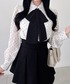 ドット×リボンのブラウスで顔まわり華やか&小顔見え🎀 透け感のある袖が春っぽくて軽やかな印象にしてくれるよ🌸 ハイウエストのフレアスカートでウエストきゅっと細見え✨ ふわっと広がるシルエットが女の子らしさしっかり出してくれるのがポイント🩰 白バッグで抜け感プラスして重たくならないバランスに👜🤍 デートにもおでかけにもぴったりな王道かわいいコーデだよ💐 Instagram @mnrxing_