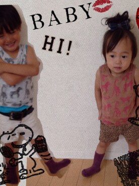 「CHUBBYGANG(チャビーギャング)のBABY レオパード柄 スリムショートパンツ(その他パンツ、その他)」を使った、の ん ちちさん(レディース・160cm)の夏コーディネート