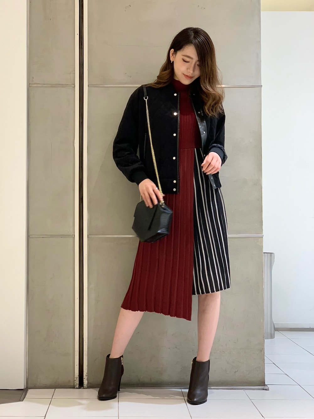 minaのブルゾン「キルティング ベロア ブルゾン」を使ったコーディネート