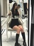 161cm / 骨格ウェーブ アームウォーマーがセットになったニットワンピ🤍🖤 程よく体のラインを拾ってくれるので、スタイルアップも期待できます! 暑苦しさはなく適度に肌見せができるので、ニット生地でも重たく見えません◎