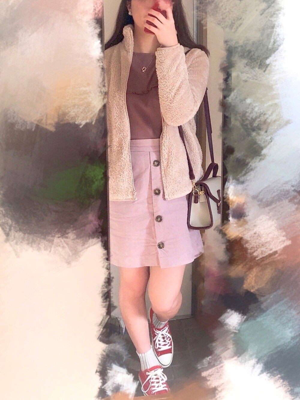 momoのスカート「・ベルト付き前ボタン台形スカート」を使ったコーディネート