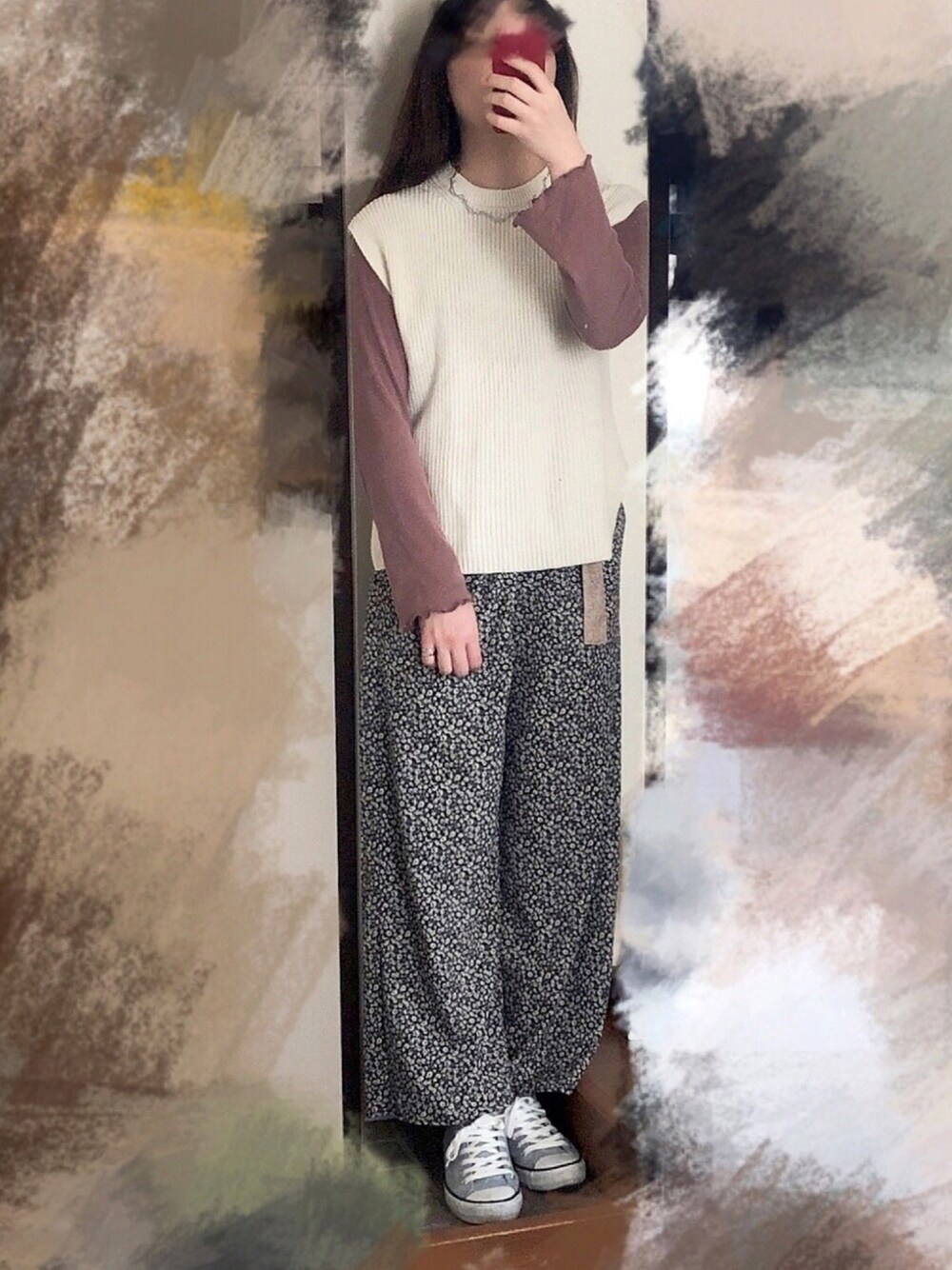 この花柄パンツがめちゃめちゃ可愛いくて🙆♀️ ✔️point グレースニーカーではずしてみました👟 instagram ➿ @momomomo.i