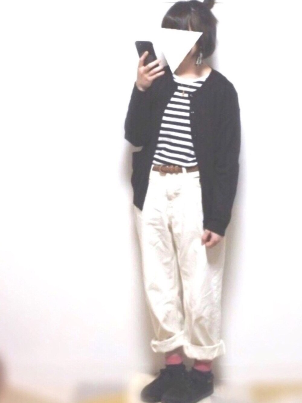 2018.3.31 昨日の。 春なのになぜかモノトーンが着たくなる〜 カーディガンの肘当てがうさぎ🐰 ネックレスがペンギン🐧 かくれアニマルコーデです。