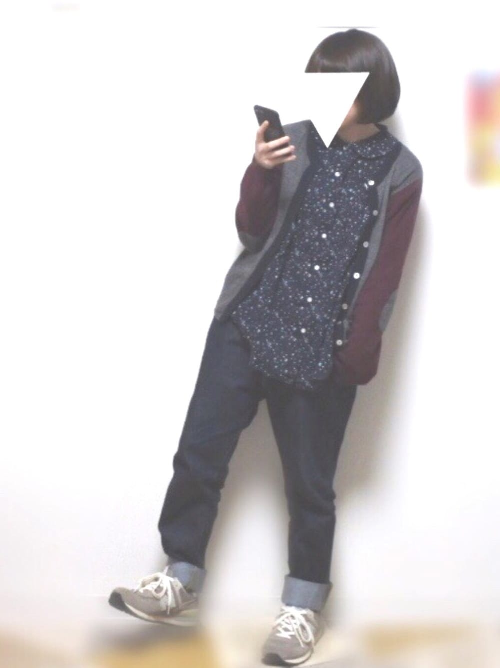 2018.4.5 最近ダークトーンなコーデが多いなあ。 春なのに。 いや、寒すぎて全然春じゃないけど。 シャツが花柄でちょこっと春。かな。。