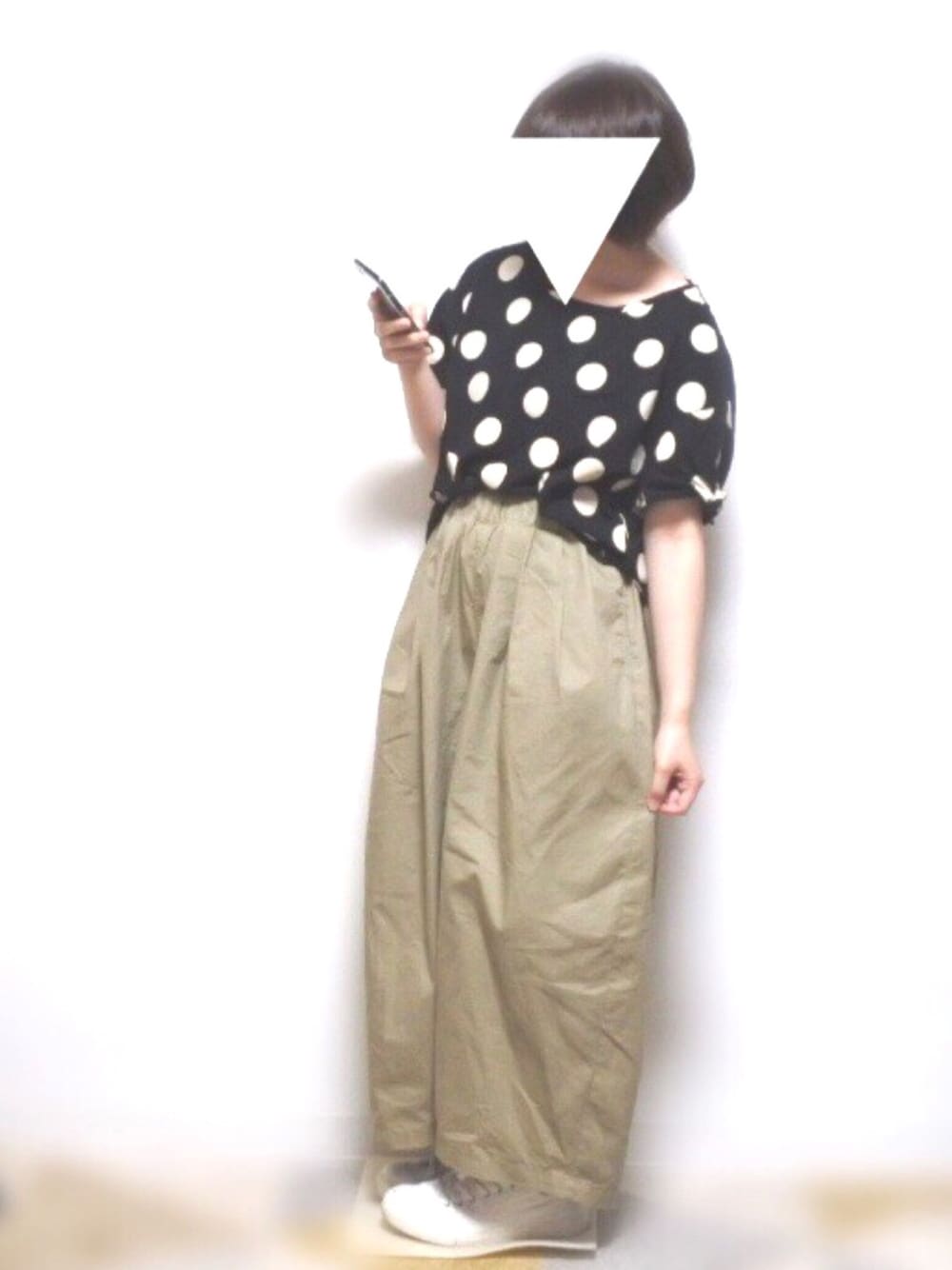 Moo*のTシャツ/カットソー「綿麻天竺袖口リボンボーダー・ドットTシャツ」を使ったコーディネート