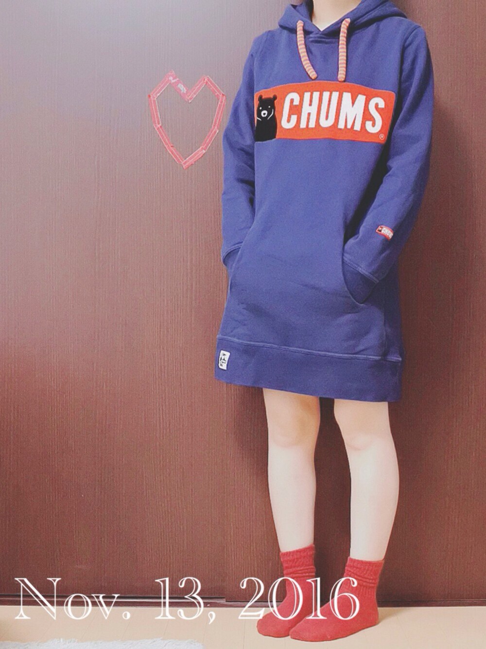 今日もおうちでだらだらコーデ。 外は雨ざーざー。 フラボア×チャムスのパーカーワンピでぬくぬく◎