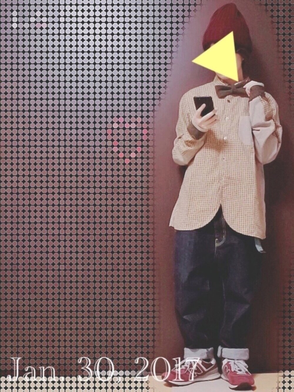 フラボアのメンズシャツとメルシーのサルエルでゆるゆる〜っと。 蝶ネクタイの結び方むずかしい、、 明日のピックアップタグがロールアップだったのでつけてみたけど、今までの見返してロールアップしてないコーデなんてなかった。笑