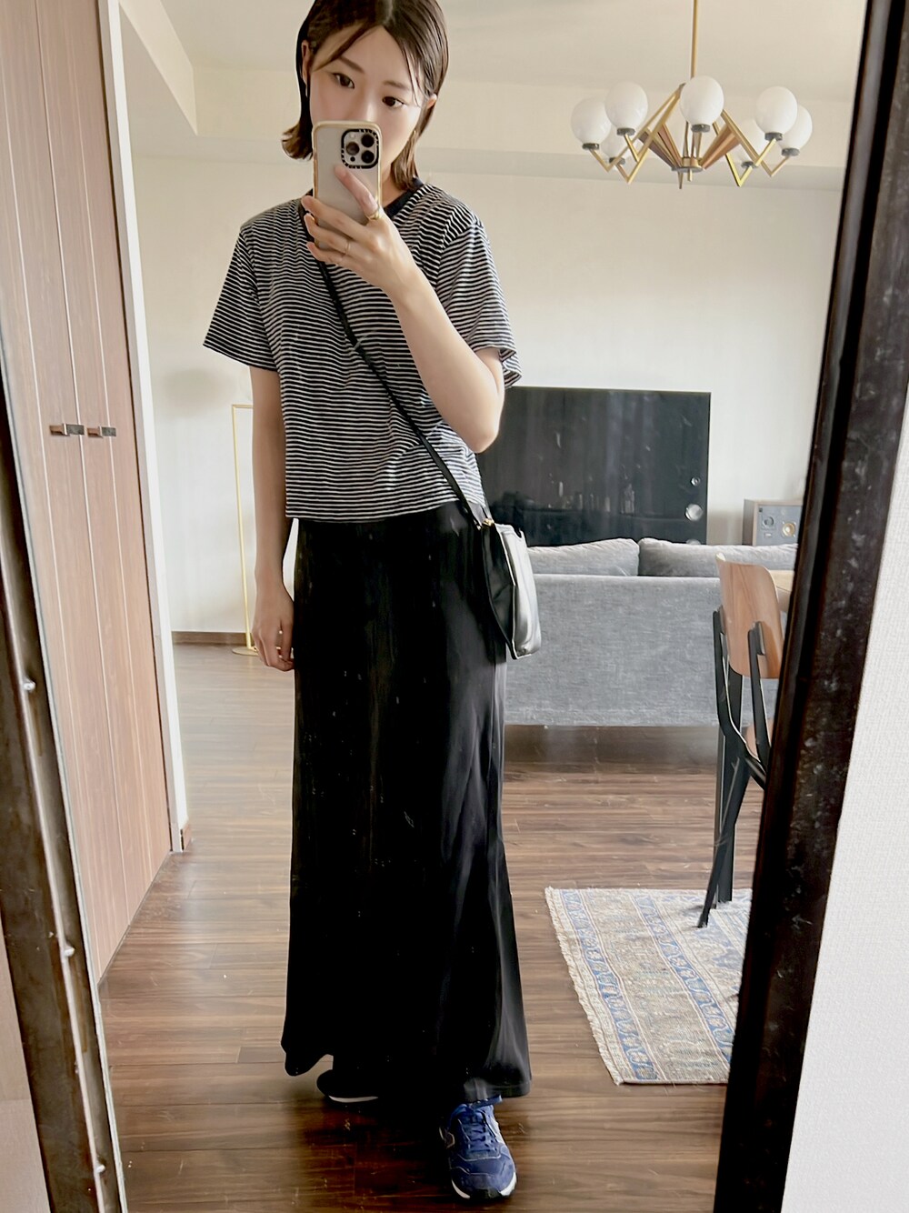 プチプラ楽チンコーデです。 UNIQLOのボーダーTシャツは丈感がすき。 しかも1000円という安さ。 3枚目に載せてますが、ゴールドの細みのリングたちはお気に入り。 unique、アッシュペーブチック、TENでの購入品。