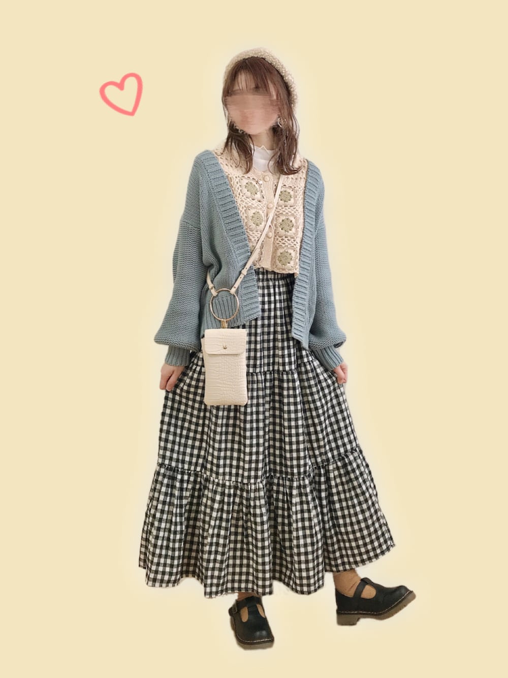ギンガムチェックのティアードスカートなんて可愛いに決まってる😆💕 今日はかぎ編みベストで甘めに振りました❤️ このスカート、低身長さんにちょうどいい丈でした✌️💕 ウエストもお直ししなくて大丈夫なの有難い🥺✨ モデルさんの写真だとベージュベースだけど、私の手元に届いたのはオフホワイトベースでした。これはこれで使いやすいけどさ🤣…ベージュのが欲しかったなぁ🥺 ネット通販の色味違う問題はあるあるよね~🙄 照明とか生産ロットの問題なのかなー??(´・ω・`) ちょっと前に撮っていたコーデなので、暖かそうですね🙈💦 撮りだめと気候の関係で春になりきれない…😂 今週ようやくブーツしまってスニーカー出したぞ🥺👟✨ ←そんなレベルです。。 もう半袖着てる人見てヾ(・ω・`;)ノぁゎゎってなってる!笑 今日も見ていただき、ありがとうございます😊💓 いいね、お気に入り、フォロー、フォルダインとっても嬉しいです🙏✨ありがとうございます🙇♀️❤️