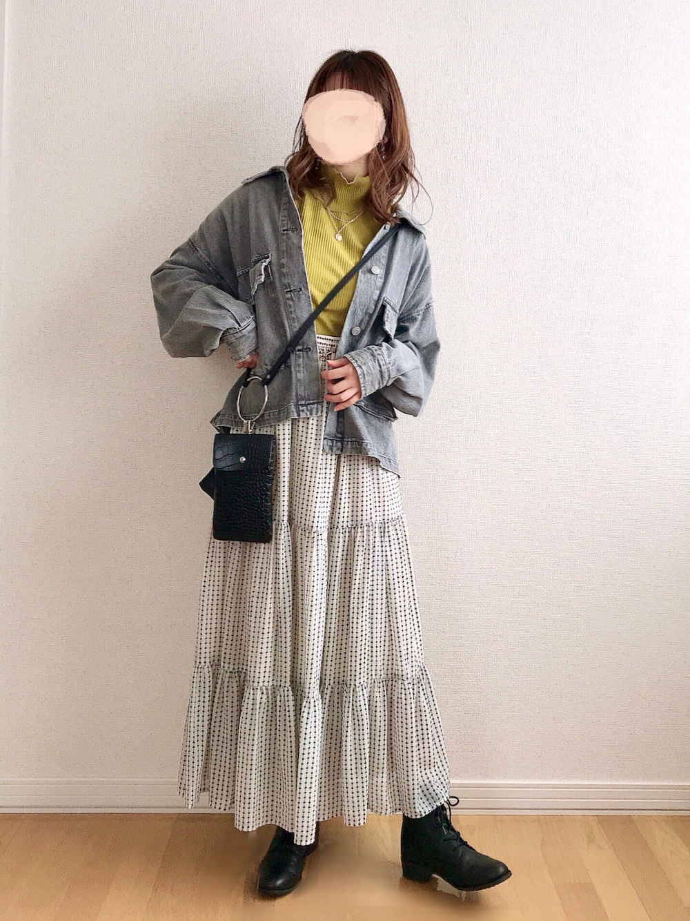 甘めのティアードスカートをデニムジャケットでカジュアルダウンした甘辛コーデ😊💗 小物を黒にするとコーデが引き締まる🖤 この前のリアルコーデです✨ ジャケットは黒と迷ったので、3.4枚目に載せてます🎵 こっちの方がキレイめな印象になるかな?🤔 ADAM ET ROPE' のスカートは私にしては奮発したけど、めっちゃ使えるので買って良かったです🙆♀️💕 ふわふわして可愛くて着てるだけでテンション上がります🙌❤️ ※ウエストめっちゃ大きいので、お直しして着てます🪡✨ 今日も見ていただき、ありがとうございます😊💗 いいね、お気に入り、フォロー、フォルダインとっても嬉しいです🙏💕 いつもありがとうございます🐰❤️