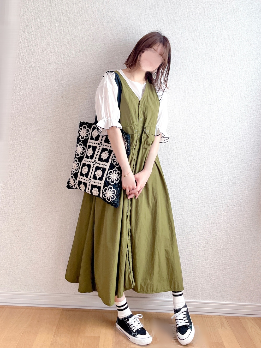 ミリタリーワンピを甘辛mixにコーデ🐊🎀 カジュアル感強めなナイロン素材のワンピには、フリルブラウスで甘さプラス♥ まさにワニ🐊がリボン🎀付けてるみたいな雰囲気が好きだったりする。(伝わって!) BEAMSBOYのワンピは自分にしては奮発して買ったけど、旅行にも着ていった程のお気に入りに☺️♥️ 水に濡れてもすぐ乾いて快適でした! リボン側を前にしたり、ボタン開けてベストにしたりと着回し力が凄いんだよ✨ ブラウスは去年のエヘカのです...♪*゚ 今週はモスモスのフェアが始まるとのことで、今からちょっとソワソワしてます🐜笑 ノベルティ可愛すぎん??🥺♥️ 今日も見ていただきありがとうございます♡♡ いいね、お気に入り、フォロー、フォルダインとっても嬉しいです🐈⬛💞いつも感謝です♥