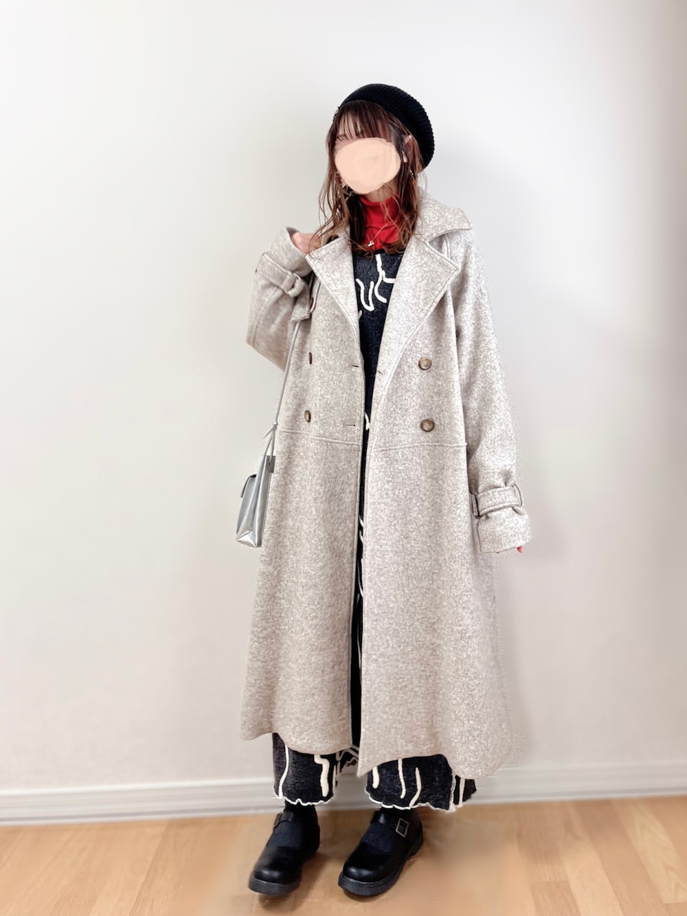 𝚊𝚛𝚒𝚗𝚊ᙏ̤̫͚.* 𖥧⚘のチェスターコート「【2サイズ展開】ハイネックロングコート」を使ったコーディネート