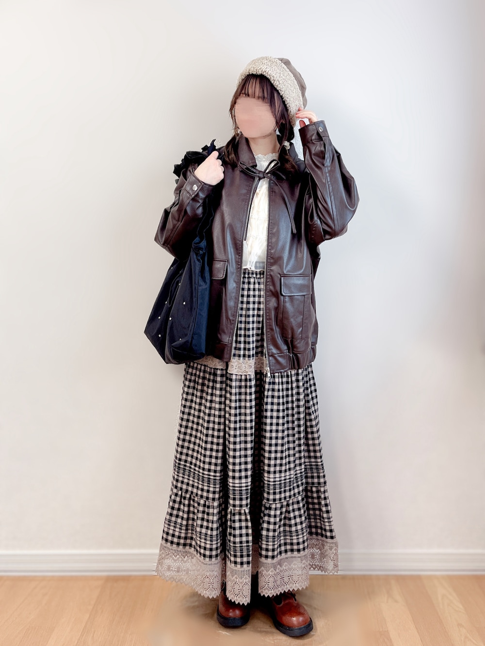 甘辛カジュアルガーリーコーデ🧸🤎𓂃🫧 今季気になってたレザージャケットを入手しました🙌🏻💕 ライダース型が絶望的に似合わない私はブルゾン型が絶対♪ fupelのは他ブランドのより細めの作りなのと、ブルゾンには珍しい首元リボン付きが購入の決め手になりました🎀⟡.* 甘めのスカートと合わせる着方がお気に入り♡♡ 発売3日くらいで完売してたので早めに買っといて正解でした✌🏻 ほぼ見えないけどトップスはDiscoatのレースキャミをレイヤードしてます🪿✨ 夏の終わりに買ってたの…ようやく出番がきました🤭 春はたくさん使います!! ご覧いただきありがとうございました(*´˘`*) いいね、お気に入り、フォロー、フォルダインもありがとうございます❁¨̮⟡.*