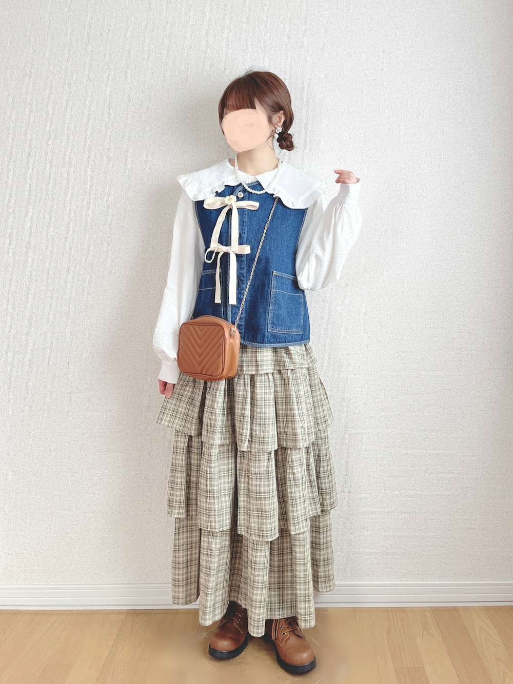 チェックスカートの着回しコーデꯁꯧ 前回はナチュラル系にしたので今回はカジュアルガーリーにしました♬.*゚ @_ciaopanic_ のスカートは古着っぽい色合いのグリーンチェックに一目惚れ🌵✨ 1枚で主役級の可愛さで軽めの素材なので夏も着れるよ! デニムベストをレイヤードするとカジュアル感出て可愛いと思う♡♡ ベストのリボン部分には @teto_ohana_to_handmade のマーガレットブローチをon♥ お花モチーフのアクセは春夏のコーデにぴったりで可愛いです!! ご覧いただきありがとうございましたꕤ︎︎ いいね、フォローなどとっても嬉しいです✨