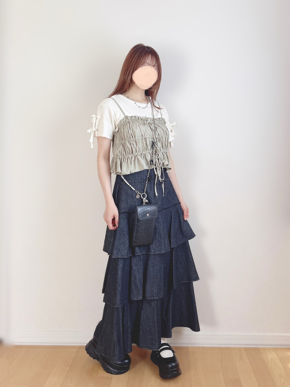 久々の更新♬.*゚ 暑い日と涼しい日の差が激しい今の時期は ビスチェが使える✨ インナー次第で夏でも秋でも着れちゃいます🍐 LOWRYSFARMのビスチェはリボンで身幅調整出来るので、レイヤードしても着膨れしなくて優秀でした👏 淡いグリーンが可愛い♡ コーデたまり過ぎてまた季節が変わりそう… またぼちぼち更新していこうと思います! ご覧いただきありがとうございましたꕤ︎︎·͜· いいね、フォローなどとっても嬉しいですෆ˚*